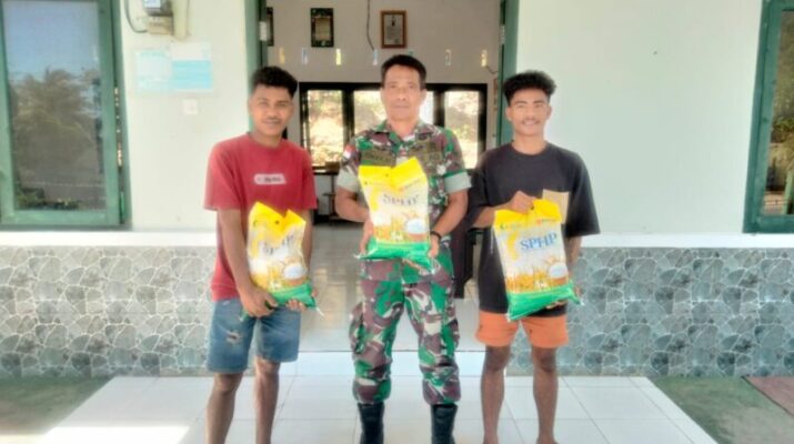 Wujud Kepedulian, Babinsa Rote Ndao Antar Pesanan Beras SPHP untuk Warga