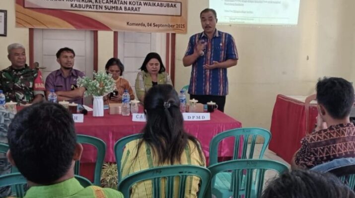 SUMBA BARAT – Babinsa Koramil 01/Loli Kodim 1613/Sumba Barat, Sertu Silas Kikhau, menghadiri kegiatan Musyawarah Perencanaan Pembangunan (Musrenbang) di Kelurahan Komerda, Kecamatan Kota Waikabubak,
