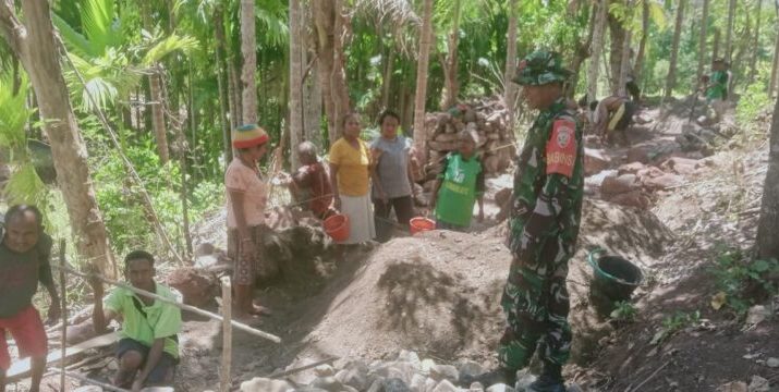NTT-KUPANG, – Babinsa Binafun Koramil 1604-03/Naikliu, Serda Didit Sumanto melaksanakan kegiatan monitoring pembangunan saluran perairan sawah irigasi Boen dengan volume sepanjang 187 meter. Kegiatan