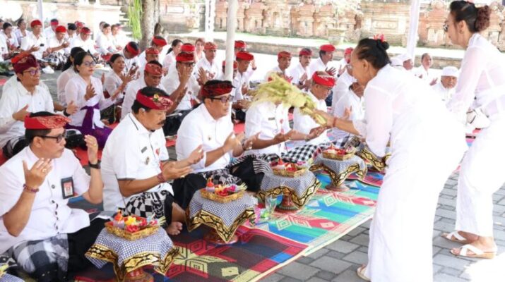 Tabanan PR – Dalam rangka memperingati Rahina Suci (Hari Suci) Saraswati yang jatuh pada Sabtu (6/9), Pemerintah Kabupaten Tabanan melaksanakan persembahyangan bersama di Padmasana