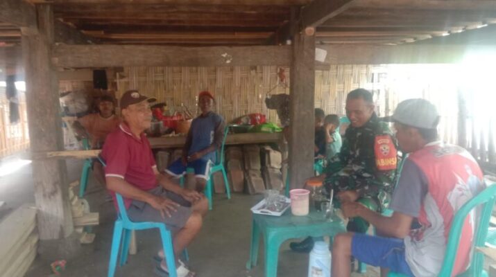 SUMBA BARAT – Babinsa Koramil 02/Walakaka, Kodim 1613/Sumba Barat, Sertu I Gusti Kade Arta, melaksanakan komunikasi sosial (Komsos) bersama warga yang sedang melakukan kegiatan