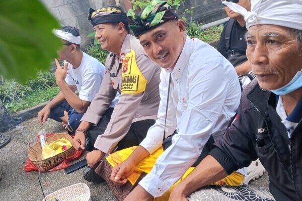 Bangli – Dalam rangkaian piodalan yang bertepatan dengan Hari Raya Saraswati, Babinsa Kelurahan Cempaga, Koramil 01/Bangli, Kodim 1626/Bangli, Serka Nengah Artawan bersama Bhabinkamtibmas Kelurahan