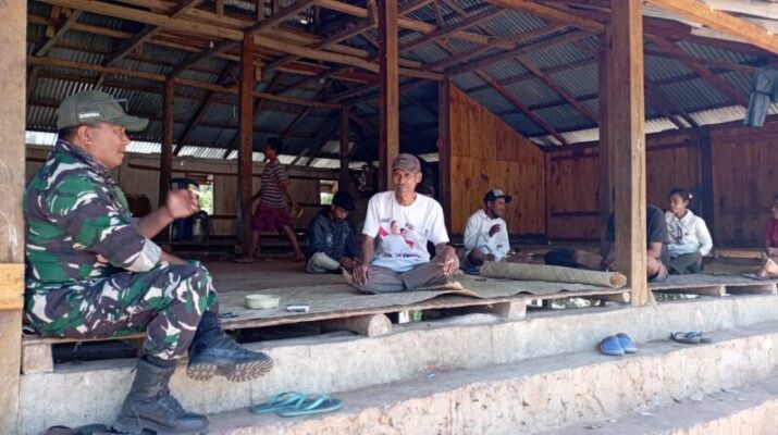 NTT – Sumba Timur. Babinsa Koramil 05/Waingapu Kodim 1601/Sumba Timur, Peltu doming Liu melaksanakan kegiatan Komunikasi Sosial (Komsos) bersama warga dan keluarga duka di