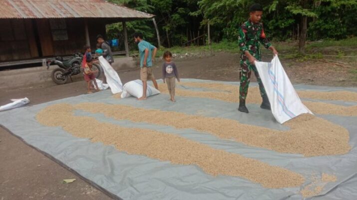 Pratu Anton Ndima Pererat Hubungan dengan Warga Lewat Jemur Padi