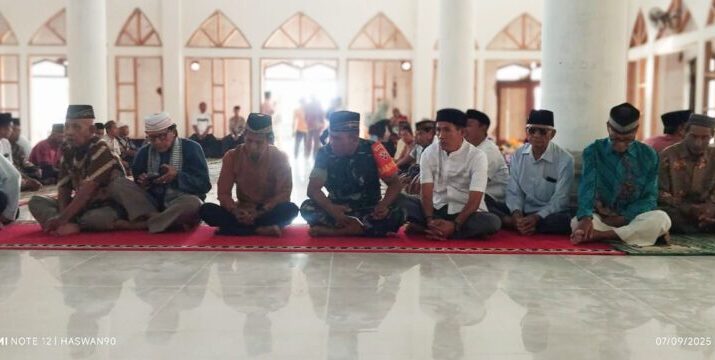 Sumbawa Barat, NTB – Babinsa Desa Air Suning, Koramil 1628-04/Seteluk, Sertu Ruslin menghadiri acara peringatan Maulid Nabi Muhammad SAW 12 Rabiul Awal 1447 H/2025