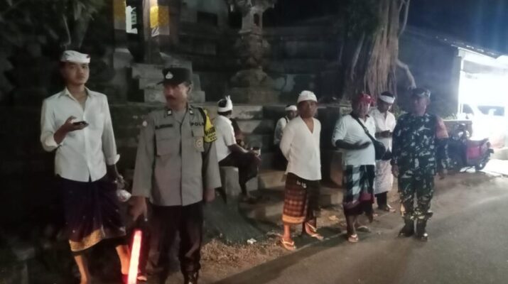 TNI-Polri dan Pecalang Kompak Atur Lalu Lintas Saat Piodalan di Pura Melanting