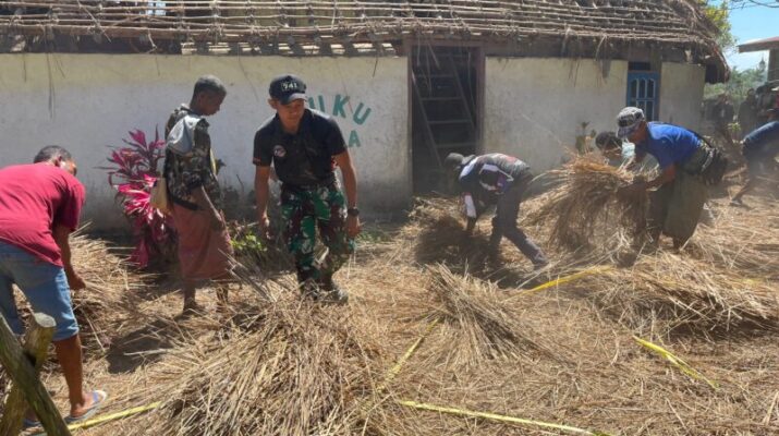 Kerjasama Pos Laktutus Bersama Masyarakat Laksanakan Pembongkaran Atap Rumah Adat
