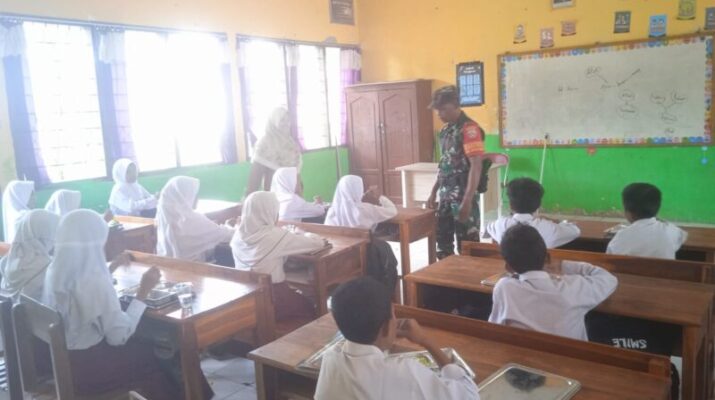 Bima _ Pada Senin, 8 September 2025, anggota Koramil 1608-03/Sape, Sertu Syarif Hidayat, Serda Aladin, dan Sertu Sahlan mendampingi pelaksanaan pembagian Makan Bergizi Gratis