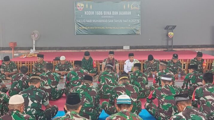 Kota Bima _ Pada Senin 08 September 2025, Aula Serbaguna Kodim 1608/Bima, menjadi tempat berlangsungnya kegiatan Peringatan Maulid Nabi Besar Muhammad SAW yang diselenggarakan
