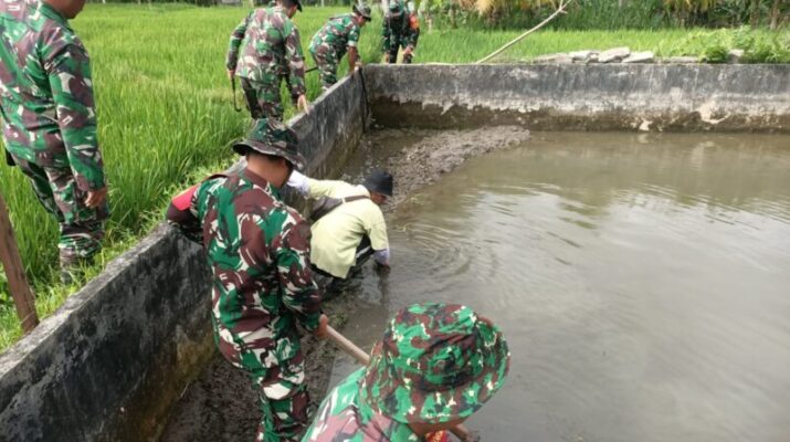 Bangli – Babinsa Desa Abuan Koramil 1626-02/Susut Kodim 1626/Bangli, Sertu I Dewa Gede Mertawan, melaksanakan pendampingan kegiatan penebaran bibit ikan lele jenis dumbo di