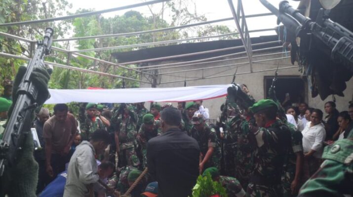 So’e _ Komandan Kodim 1621/TTS Letkol Inf Gunawan Budhi Prasetyo S.Sos., pimpin upacara militer pemakaman almarhum Prada Roland Triwidhy Tanaem Anggota Yon TP 819/PIBP