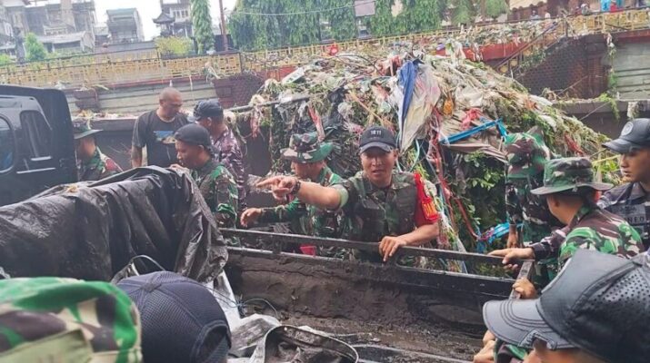 Korem 163/Wira Satya Bersama Dandim 1611/Badung Bantu Penanganan Banjir Pasar Badung