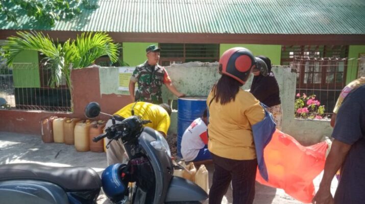 NTT-KUPANG, – Babinsa Kelurahan Airmata Koramil 1604-01/Kupang, Peltu Nuryani, melaksanakan kegiatan komunikasi sosial (Komsos) bersama warga RT 01 dan agen minyak tanah, Ibu Rahmad
