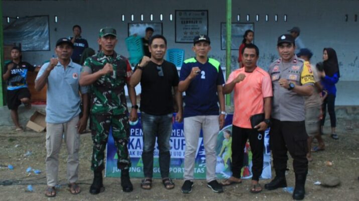 NTB – Sumbawa, Senin (9/9/2025) — Babinsa Desa Batu Tering, Serda Safrindinata, anggota Koramil 1607-08/Moyo Hulu, menghadiri acara penutupan pertandingan Sepak Bola Mini U-10