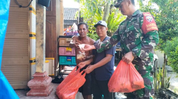 Klungkung,- Dalam rangka memenuhi kebutuhan ratusan warga yang terdampak banjir di wilayah Desa Kusamba, Kecamatan Dawan, Kabupaten Klungkung, Babinsa Kusamba Peltu Made Rai Darmika