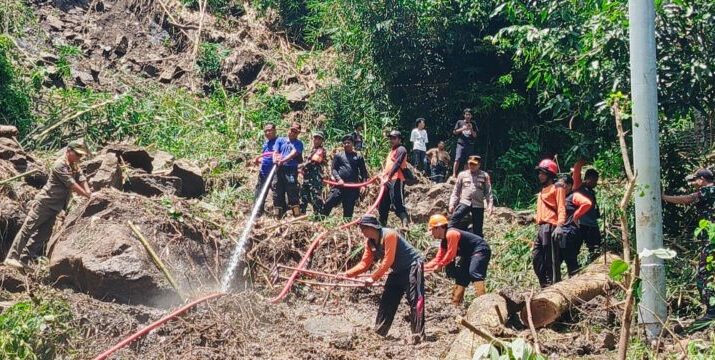 Aparat Gabungan Bersama Warga Gelar Kerja Bhakti Pembersihan material Lonsor Di Kecamatan Dawan
