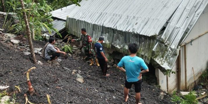 Babinsa dan Warga Gotong Royong Tangani Rumah Tertimpa Talud