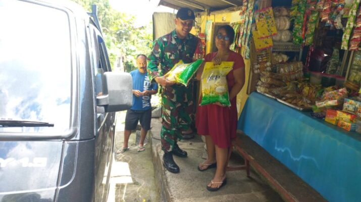 Banjar, – Dua Babinsa Koramil 1609-06/Banjar, Sertu Ida Putu Ardana dan Sertu Putu Sukarmayase, kembali menunjukkan kepeduliannya kepada masyarakat dengan mengantarkan pesanan beras SPHP