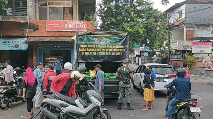Denpasar, 14 September 2025 – Kodim 1611/Badung kembali menunjukkan kepeduliannya terhadap kebutuhan masyarakat dengan menggelar aksi pasar murah di Pasar Kreneng, Denpasar, Minggu pagi
