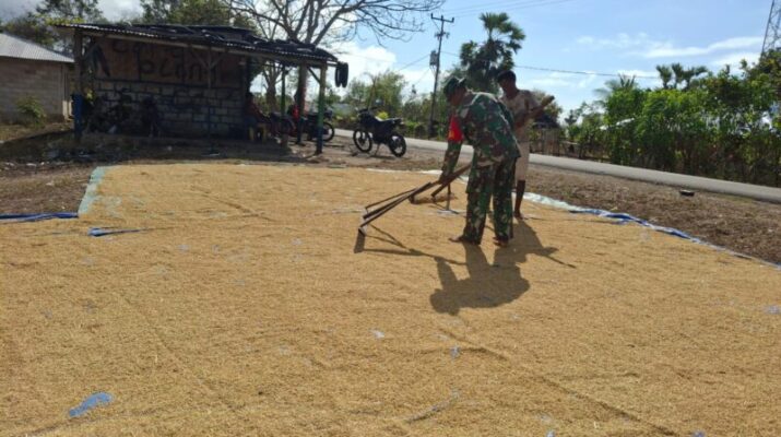 Peduli Petani, Babinsa Koramil 03/Pahunga Lodu Jemur Padi Bersama Warga