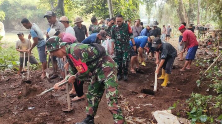 Gotong Royong Koramil 05 Kerambitan Bersama Warga Bersihkan Longsor di Belumbang