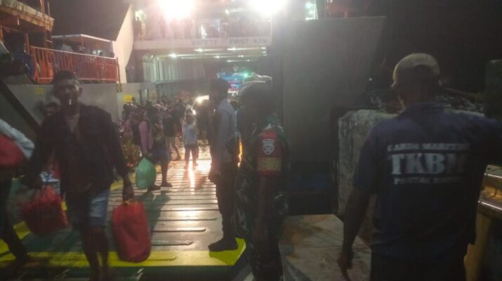 Rote Ndao – Personel Koramil 1627/02 Pantai Baru, Serka Haris Lakuy, melaksanakan tugas pengamanan di Pelabuhan Fery Desa Ofalangga, Kecamatan Pantai Baru, pada Senin