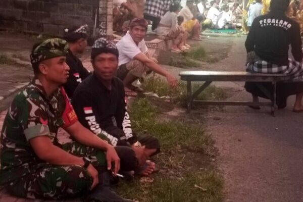 Klungkung,- Agenda rutin Ida Bhatara Mesolah di Desa Jumpai, kecamatan Klungkung, kabupaten Klungkung yang dilaksanakan setiap 15 hari terus mendapat pengawalan dan pengamanan Babinsa