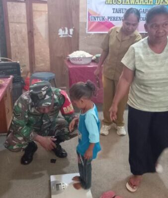 So’e – Upaya menanggulangi stunting, Serda Agus Takesan, Babinsa Koramil 1621-01/Kota So’e, bersama Tim Pendamping, Stunting melaksanakan pembagian Pemberian Makanan Tambahan (PMT) untuk 13