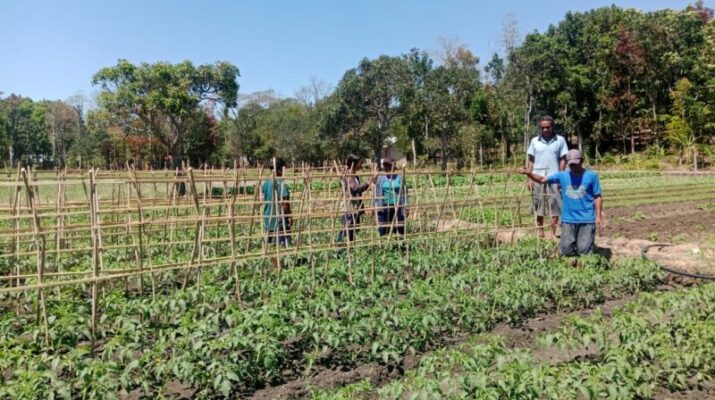 Babinsa Kodim 1621/TTS Dampingi Petani Rawat Tanaman Tomat