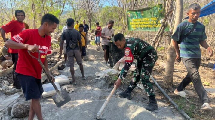 TNI dan Warga Hoder Bergotong Royong Bangun Jalan Desa dalam Program PRIMA