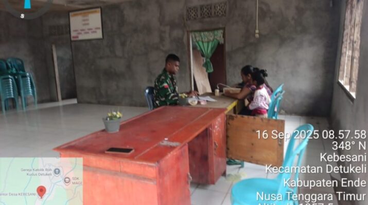 Ende, Babinsa Koramil 1602-04/Maurole, Pratu Laurensius Laja, melaksanakan kegiatan Pengumpulan Data Teritorial (Puldatater) di wilayah binaannya, tepatnya di Kantor Desa Kebesani, Kecamatan Detukeli, Kabupaten