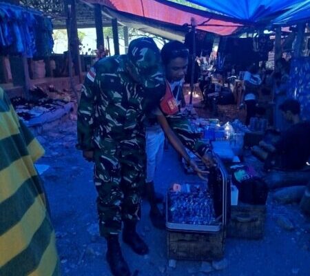 NTT-NAIKLIU, – Babinsa Kelurahan Naikliu, Koramil 1604-03/Naikliu, Serda Deki Christian Tamelan, melaksanakan kegiatan monitoring di Pasar Tradisional Naikliu, Kecamatan Amfoang Utara, Kabupaten Kupang. Kegiatan