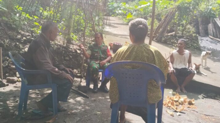 Ngada – Babinsa Koramil 1625-05/Aesesa, Kopda Misraim A. Fay, melaksanakan kegiatan komunikasi sosial (Komsos) sekaligus monitoring wilayah di Desa Labolewa, Kecamatan Aesesa, Kabupaten Nagekeo,