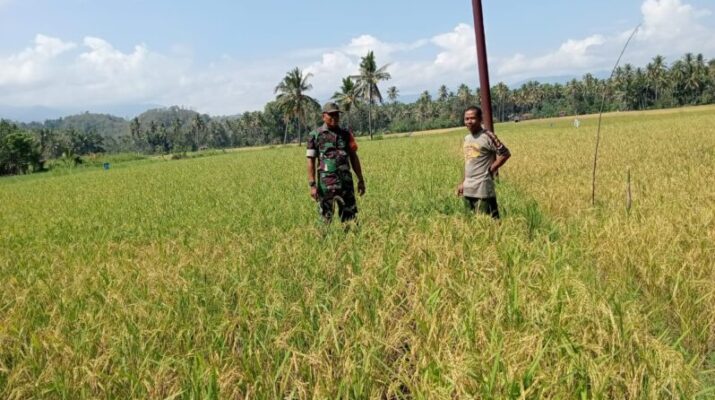Maurole, Babinsa Koramil 1602-04/Maurole, Sertu Donatus Kiri, melaksanakan kegiatan Han Pangan dengan memantau kondisi padi bersama kelompok tani Utu Kita di Desa Woloau, Kecamatan