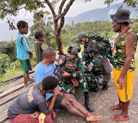 Puncak Jaya, Papua – Jarak yang jauh dan medan yang sulit bukanlah penghalang bagi Satgas Yonif 743/PSY Pos Tirineri dalam memberikan pelayanan terbaik kepada