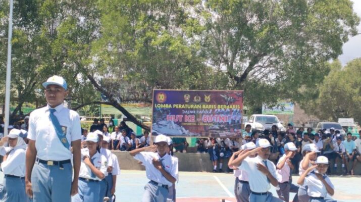 NTT – Sumba Timur.Dalam rangka memperingati HUT ke-80 Tentara Nasional Indonesia, Kodim 1601/Sumba Timur menggelar Lomba Peraturan Baris-Berbaris (PBB) tingkat Pelajar SMP/Sederajat dan SMA/Sederajat