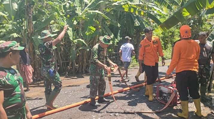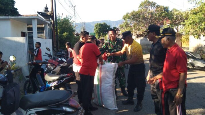 Lombok Timur – Danramil 1615-02/Pringgabaya, Kapten Inf Agil, bersama anggota Koramil melaksanakan gotong royong membantu warga yang terdampak banjir akibat jebolnya tanggul Koko Tanggek.