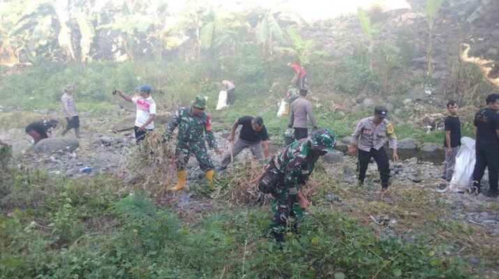 Sinergi TNI, Pemdes, dan Komunitas Lingkungan: Bersihkan Sungai Bakung dari Sampah Plastik