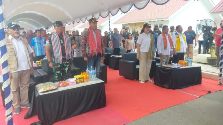 NTT-KUPANG, – Dandim 1604/Kupang Kolonel Inf Kadek Abriawan, S.I.P., M.H.I mendampingi Bupati Kupang Yosef Lede, S.H menyerahkan secara simbolis kunci rumah dan sertifikat kepada