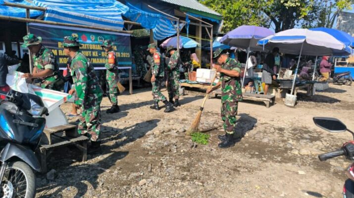 Manggarai, 20 September 2025 — Suasana Pasar TPI, Kelurahan Reo, Kecamatan Reok, mendadak lebih segar dan tertata pada Sabtu pagi. Sebanyak 21 personel Babinsa