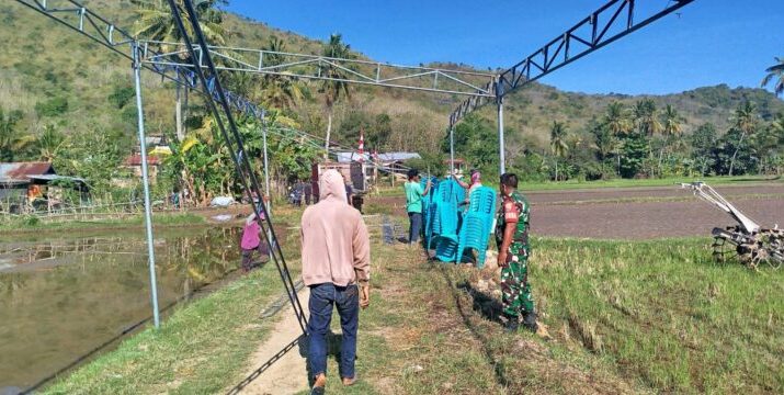 Sumbawa Barat, NTB – Anggota Koramil 1628-01/Taliwang, Babinsa Kelurahan Menala Serda A. Rahman melaksanakan kegiatan gotong royong bersama para petani di Lingkungan Blisung, Kelurahan