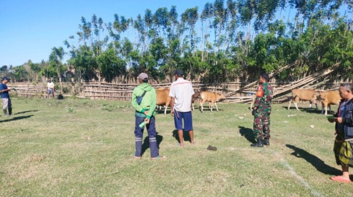 Dukung Program Pemerintah, Babinsa Koramil 1628-04 Poto Tano Kawal Vaksinasi Ternak di Desa Mantar