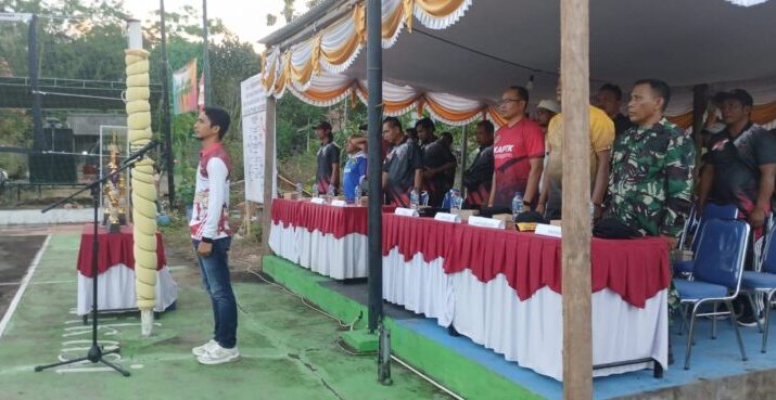 KARANGASEM – Anggota Koramil 1623-08/Kubu Serma I Wayan Arya mewakili Danramil 1623-08/Kubu menghadiri kegiatan pembukaan turnamen bola voli dalam rangka Pordes Desa Tianyar Tengah