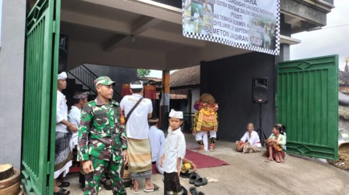KARANGASEM – Babinsa Desa Kertha Buana Koramil 1623-04/Sidemen Sertu Wayan Widana melaksanakan pengamanan upacara keagamaan, di Banjar Dinas Temaga Dusun Temaga Desa Kertha Buana