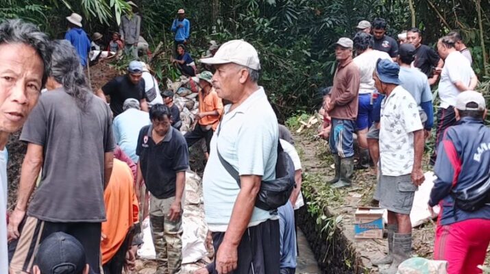 Kapten Caj Triyono Bersama Masyarakat Gotong Royong Tangani Aliran Subak Serason yang Jebol