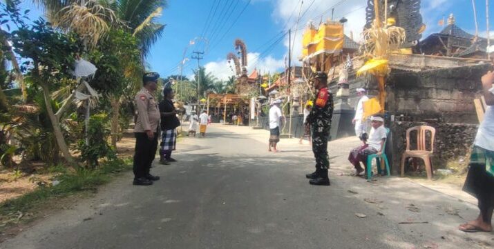 Klungkung,- Komitmen Koramil 1610-04/Nusa Penida untuk berperan aktif dan berkontribusi dengan berlangsungnya upacara keagamaan berupa Tawur Balik Sumpah, Melaspas Mendem Pedagingan, Ngadegan Ide Betara,