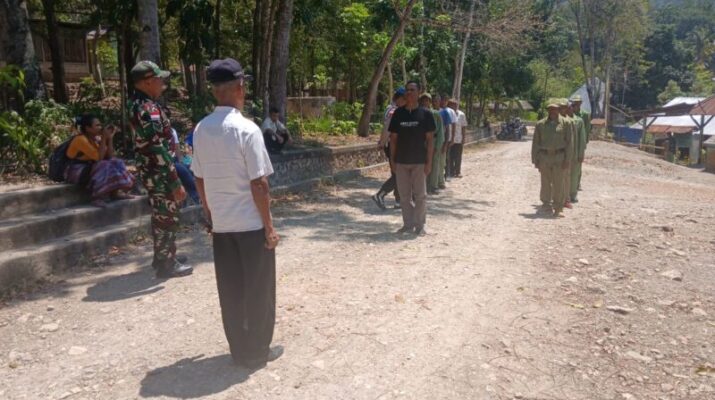 NTT-Kefamenanu, Senin 22 September 2025, Babinsa Koramil 1618-04/Bisel, Serka Yohanes Banfatin, menghadiri sekaligus memberikan pelatihan dan pembekalan kepada Anggota Perlindungan Masyarakat (Linmas) Desa Loeram,
