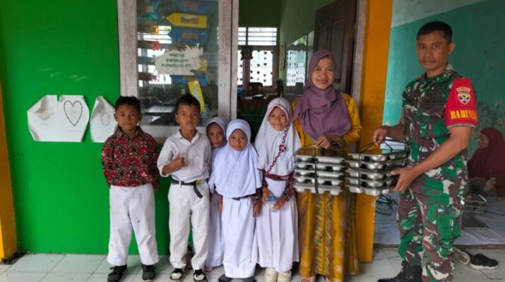 Sumbawa Barat, NTB – Babinsa Koramil 1628-03/Seteluk, Sertu Dahlan, melaksanakan pendampingan kegiatan Program Makanan Sehat Bergizi (MSG) di SDIT Ar Risalah, Desa Seteluk Tengah,