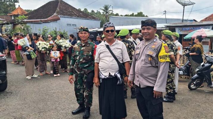 Kolaborasi Babinsa dan Pecalang Atur Lalin Saat Upacara Ngaben Almarhumah Ni Wayan Klemis