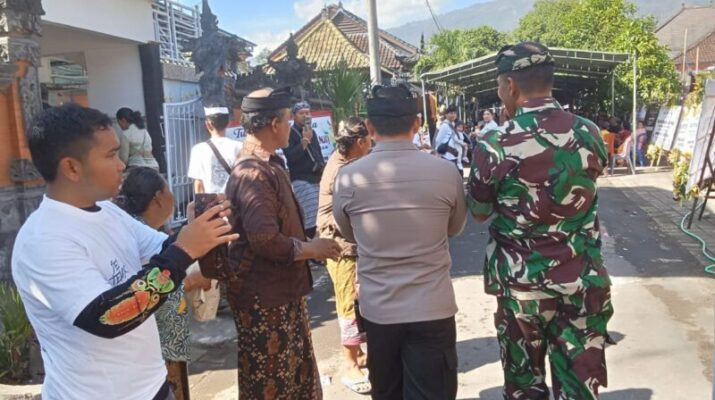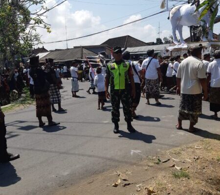 Gianyar – Batubulan, Sabtu (27/9/2025) turut mendukung kelancaran dan ketertiban kegiatan adat di wilayah binaan, Babinsa Desa Batubulan Kangin Koramil 1616-05/Sukawati Serka I Nengah